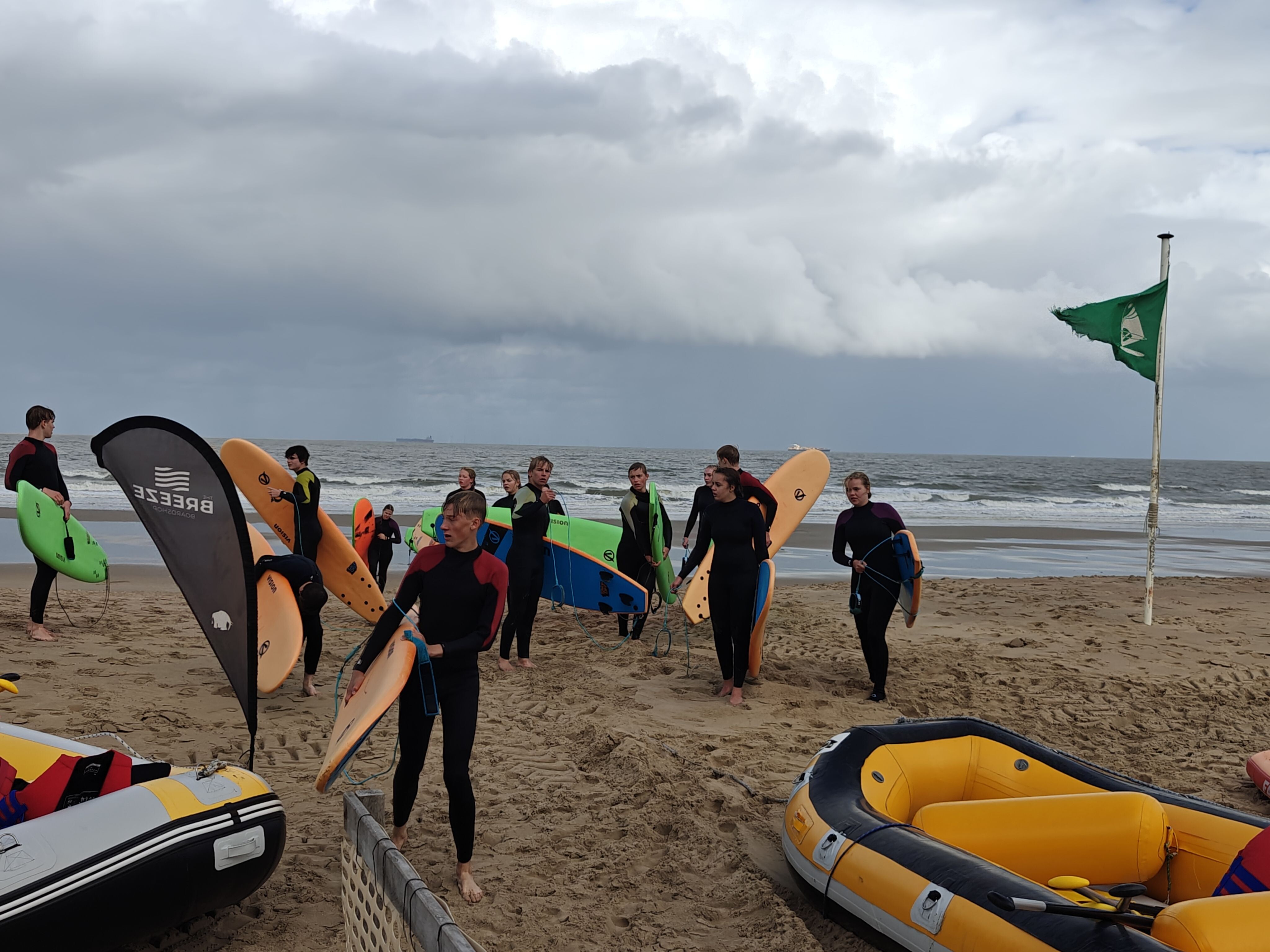 Tot slot mochten onze zesdes hun hartje ophalen aan zee. In de Surfing Elephant Beachclub in Wenduine mochten ze surfen, giant suppen, raften, powerkiten, longboarden en teambuildingspelen uitvoeren.